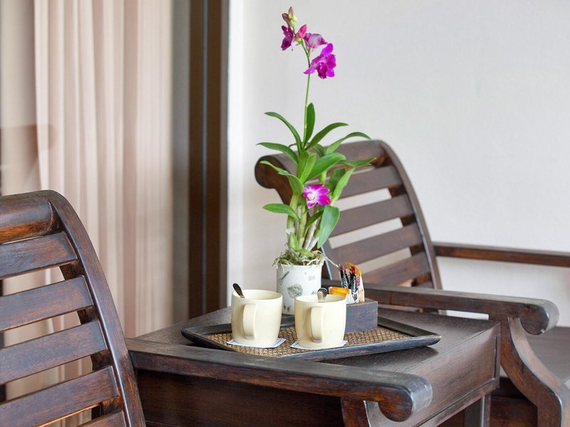 - Superior Bungalow (BUX2), Bungalow, Gartenseite, ca. 38 m², 1 Doppelbett (183x203cm), Klimaanlage: ohne Gebühr, Januar - Dezember, individuell regelbar, zentral gesteuert, Fußboden: Fliesenboden, Safe: ohne Gebühr, Kaffee-/Teezubereiter, Wasserkocher, Minibar: Wasser: gegen Gebühr, Telefon, Internet: WLAN/WiFi: ohne Gebühr, Fernseher: deutsches Programm, Deutsche Welle, Sat-TV, DVD-Player, Roomservice: gegen Gebühr, Reinigungsservice: täglich, ohne Gebühr, Dusche, WC, Bademantel: ohne Gebühr, Slipper: ohne Gebühr, Föhn, Terrasse: mit Sitzgelegenheit