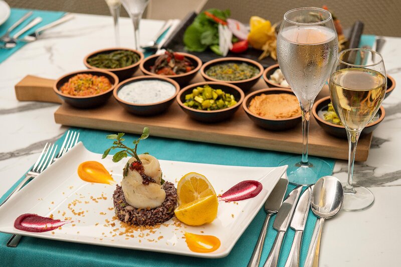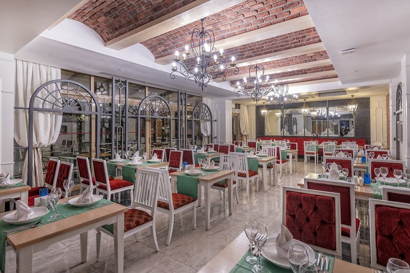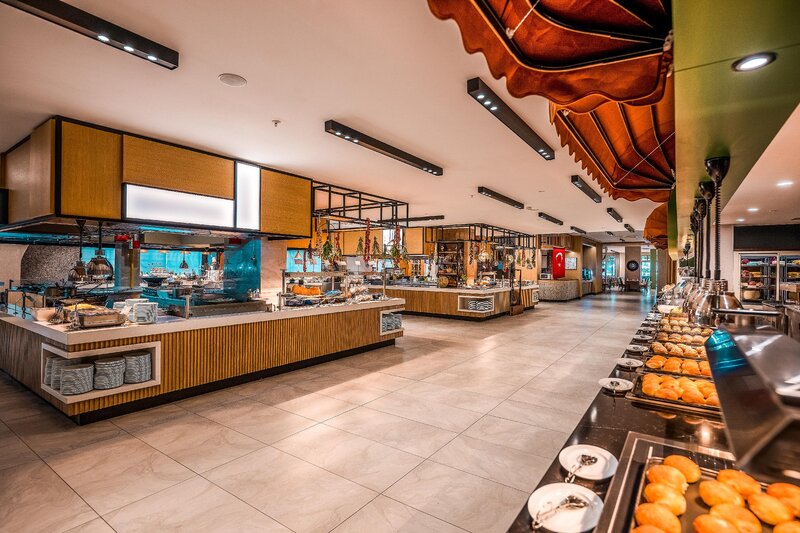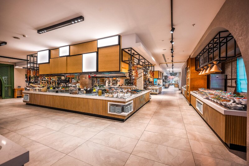 - 2 bufetové reštaurácie, 6 reštaurácií à la carte (talianska, libanonská, mexická (13+) kuchyňa, Elite (13+), rybie pokrmy, steakhouse, za poplatok)