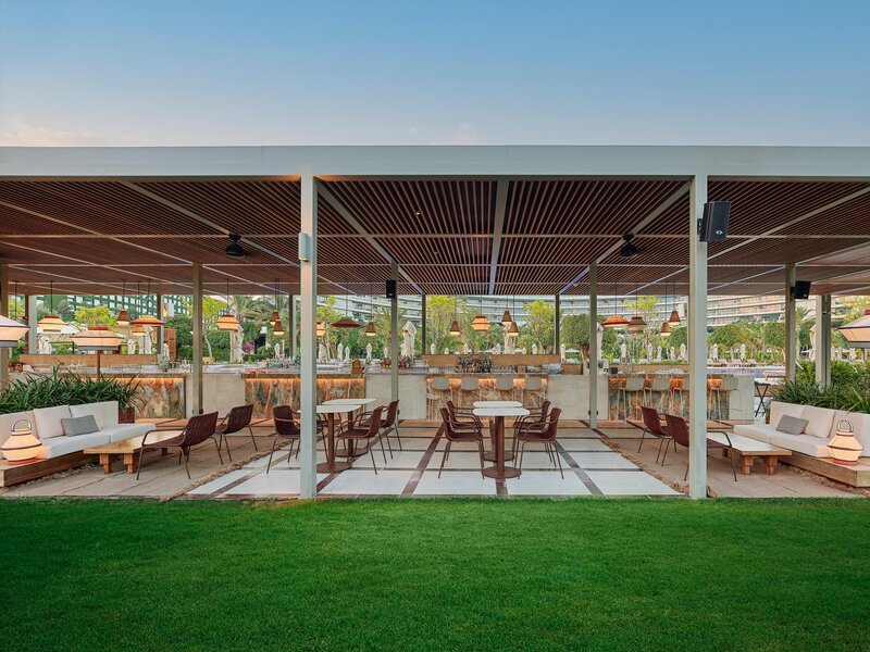- Buffetrestaurant, 24-Stunden-Restaurant, Restaurant-Straße „Azure Court“ (mediterran, türkisch, Fisch), 3 Fine-Dining-Restaurants (Steakhaus, japanische Küche und „Gastro by Alfredo Russo“)