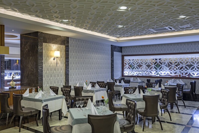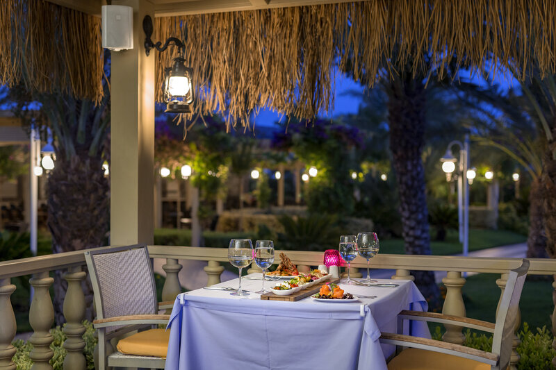 - Hlavná reštaurácia, 6 à la carte reštaurácií (talianska, ďaleký východ, turecká, mexická a japonská kuchyňa, ryby a morské plody; 1. apríla - 31. októbra, s rezerváciou, za poplatok)