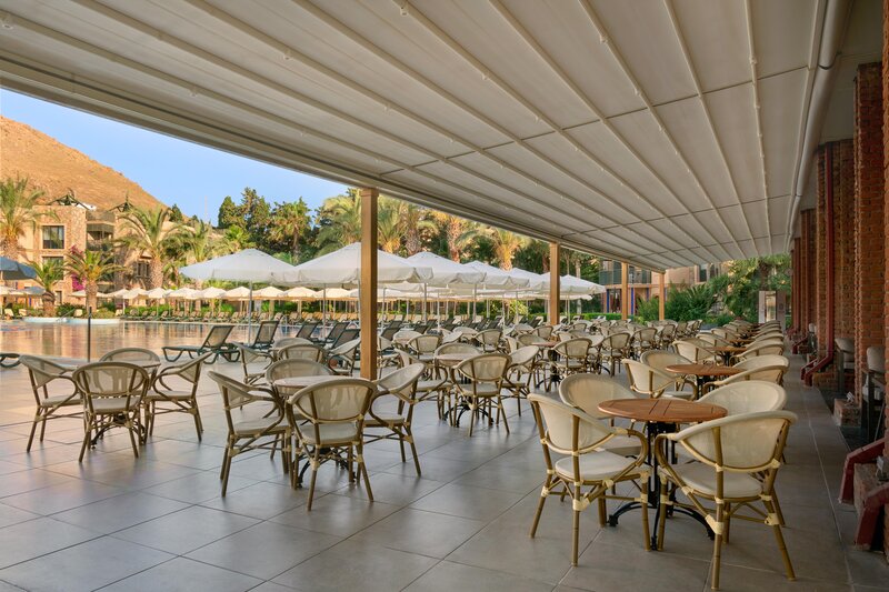 - Bufetová reštaurácia s terasou, 2 à la carte reštaurácie (turecká, medzinárodná a talianska kuchyňa, morské plody)