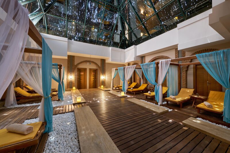 - Buffetrestaurant mit Terrasse, 2 A-la-carte-Restaurants (türkische, internationale und italienische Küche, Meeresfrüchte)