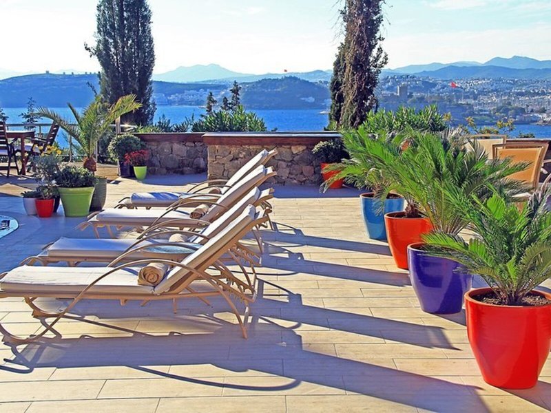 Poloha a okolie Hotel am Kloster Hill sa nachádza na južnom konci Bodrumu, odtiaľ je to pešo necelých 10 minút (cca 500 m) na pešiu zónu v centre mesta. Najbližšia pláž je vzdialená približne 300 metrov a krásny hrad a prístav v Bodrume sú vzdialené len niečo málo cez 1 km. V okruhu 500 metrov od hotela nájdete množstvo barov, klubov a reštaurácií. Autobusová zastávka je vzdialená približne 1500 m a letisko Milas-Bodrum približne 32 km.