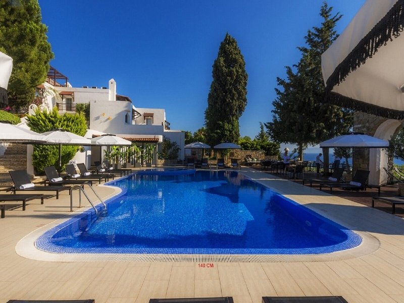 Lage & Umgebung Das Hotel am Kloster Hill steht am südlichen Ende von Bodrum, von dort aus sind es weniger als 10 Minuten zu Fuß (ca. 500 m) bis zur Fußgängerzone in der Stadtmitte. Der nächste Strand ist etwa 300 m entfernt, und Bodrums schönes Schloss und sein Jachthafen liegen beide etwas mehr als 1 km entfernt. Die Gäste erreichen zahlreiche Bars, Clubs und Restaurants nach ungefähr 500 m. Das Mausoleum von Bodrum ist etwa 1,7 km vom Hotel entfernt. Bis zur Bushaltestelle sind es ca. 1500 m und bis zum Flughafen Milas-Bodrum etwa 32 km.