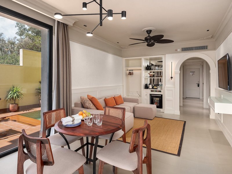 So wohnen Sie: Für angenehmes Raumklima in den Zimmern sorgen eine Klimaanlage, eine Heizung und ein Ventilator. Die Gäste erwartet ein Begrüßungsgeschenk. Auf dem Balkon oder der privaten Terrasse der meisten Zimmer können die Gäste entspannen und den Blick auf das Meer genießen. Die Zimmer verfügen über ein Kingsize-Bett oder ein Sofabett. Es gibt separate Schlafzimmer. Gegen Gebühr ist ein Zustellbett erhältlich. Außerdem sind ein Safe und eine Minibar verfügbar. Die Kochnische ist mit einem Minikühlschrank, einem Herd, einer Mikrowelle und einer Tee-/Kaffeemaschine gut für Selbstversorger ausgestattet. Besten Urlaubskomfort bieten ein Telefon, ein TV-Gerät, ein Wecker und WiFi (ohne Gebühr). Zudem können die Gäste den Gute-Nacht-Service in Anspruch nehmen. Zu den Vorzügen der Zimmer gehören Hausschuhe. Die Badezimmer verfügen über eine Dusche und eine Badewanne. Für den täglichen Gebrauch stehen ein Haartrockner, ein Kosmetikspiegel und Bademäntel zur Verfügung. Außerdem sind rollstuhlgerechte Zimmer mit barrierefreiem Badezimmer buchbar. Das Hotel bietet Nichtraucherzimmer.