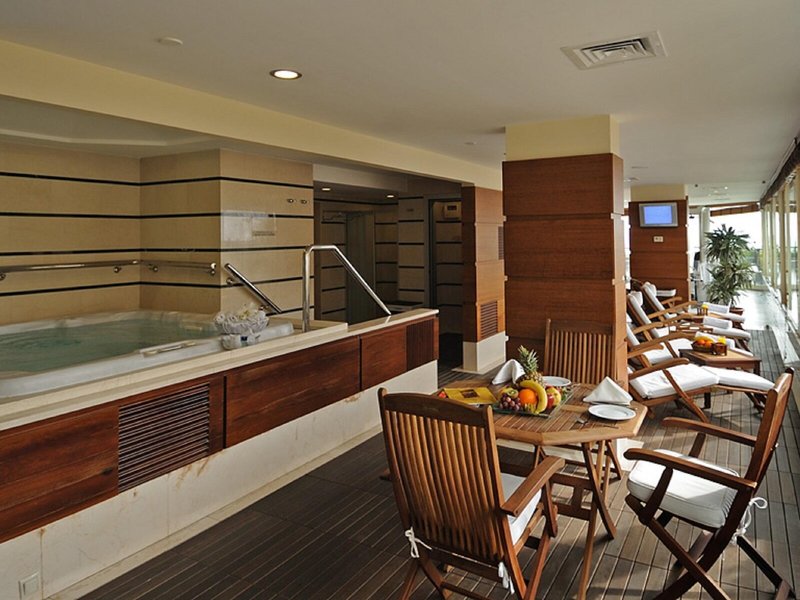 Šport & Fitness: V krytom bazéne čaká na hostí aktívny oddych a zdravá zábava z plávania. Pre hostí sú k dispozícii slnečníky. Vírivka v kúpacej časti sľubuje príjemný relax. Ak nechcete počas cestovania vynechať šport, hotel ponúka golf. Posilňovňa a aerobik sú súčasťou hotelovej športovej a rekreačnej ponuky. Hotel má wellness centrum s kúpeľmi, hammamom, kozmetickým salónom a hydroterapeutickými procedúrami, ako aj saunu, parný kúpeľ a masáže za príplatok. Animačný program, detský klub a diskotéka sa postarajú o najlepšiu zábavu vo voľnom čase.