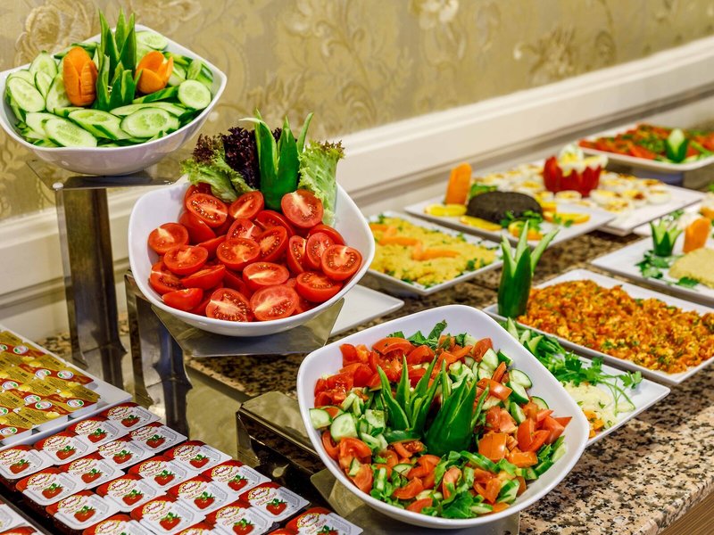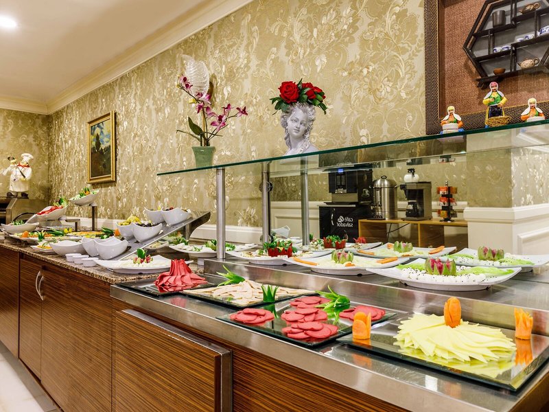 Jedlo a pitie: K dispozícii je niekoľko možností stravovania vrátane reštaurácie, kaviarne a baru. Hotel ponúka ubytovanie s raňajkami, polpenziu a plnú penziu ako rezervovateľné stravovacie programy. Bohatý raňajkový bufet zaručuje dobrý štart do dňa. Na obed a večeru si hostia môžu vybrať medzi à la carte a stanovenými menu. Detské menu je k dispozícii na požiadanie.