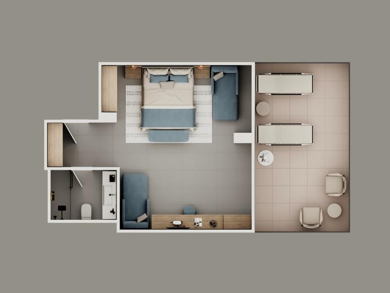 - Minibar (tägliche Füllung mit Wasser, Softgetränken und Bier), Kapsel-Kaffeemaschine
