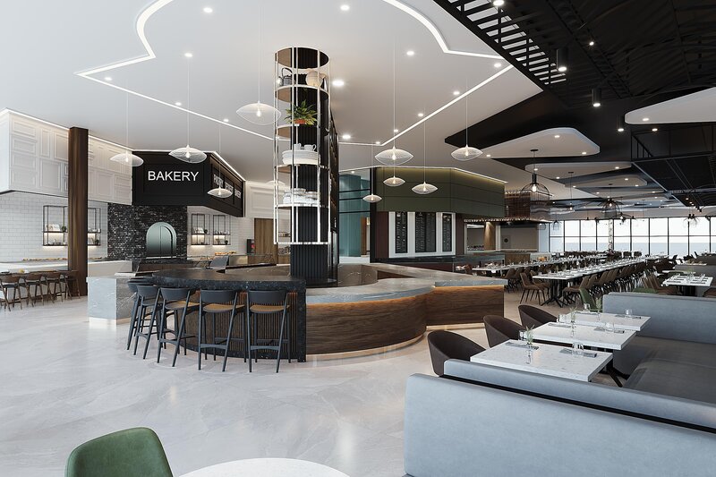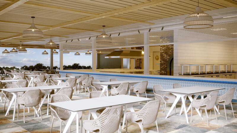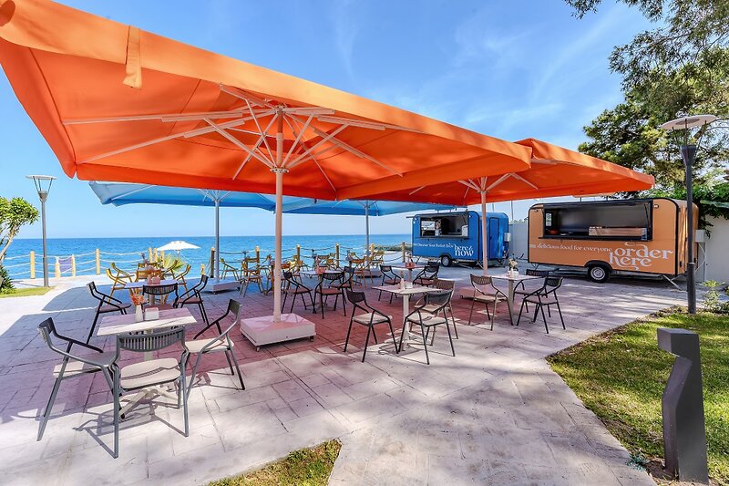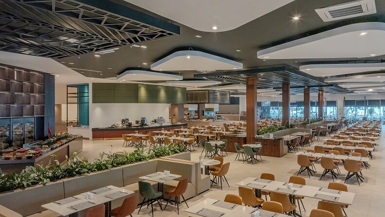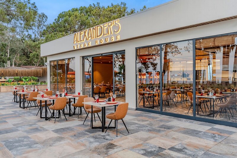 - Bufetová reštaurácia s terasou, 2 reštaurácie à la carte (stredomorská kuchyňa a morské plody, steakhouse; za poplatok)