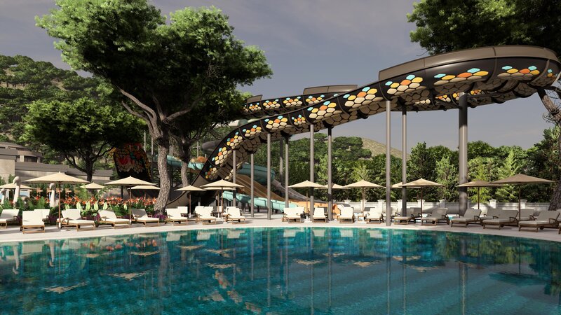 - Aquapark mit 5 Wasserrutschen (stundenweise, wetterabhängig)