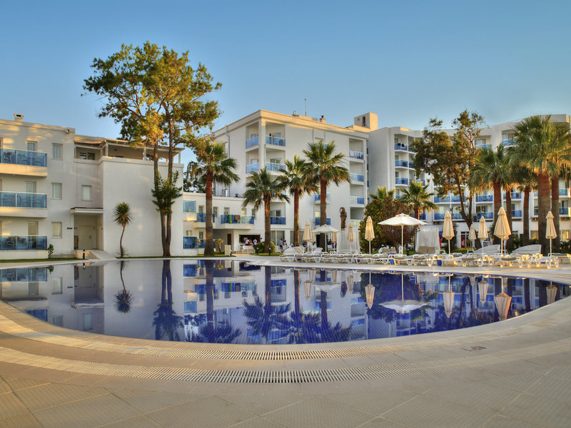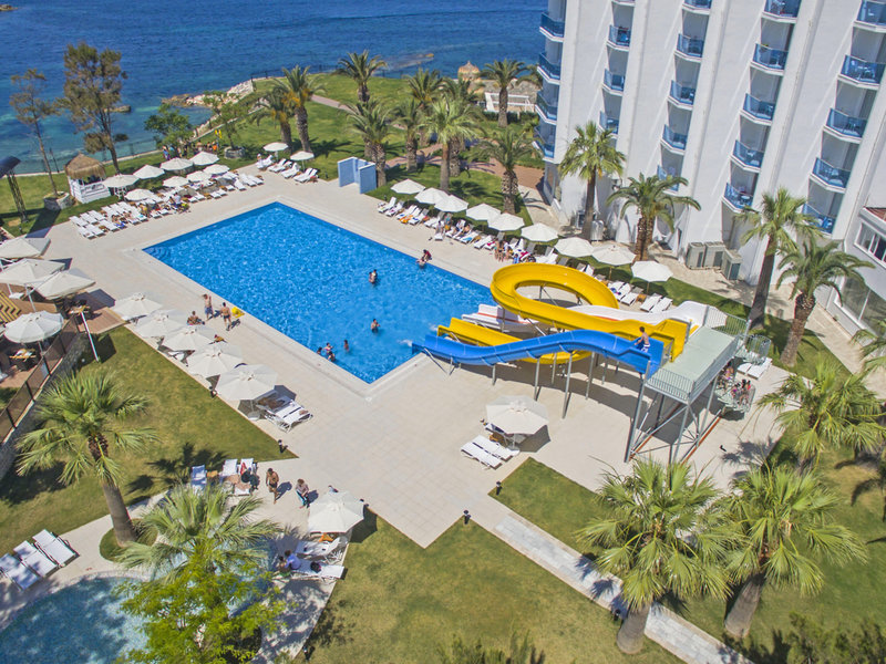 Lage & Umgebung Direkt am Sandstrand, und nur ca. 3 km vom Ortszentrum von Kusadasi entfernt gelegen, bietet das Hotel ein erstklassiges Urlaubserlebnis. Transferzeit ab/bis Izmir ca. 90 Minuten, ab/bis Bodrum ca. 3 Stunden.