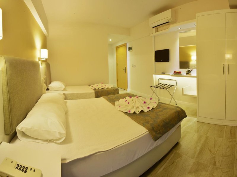Lage & Umgebung Das Hotel liegt direkt am Strand. Das Zentrum von Marmaris ist rund 1,5 km entfernt. In einem Umkreis von ca. 2 km vom Hotel finden Sie Restaurants, Bars und Clubs. Bis nach Muğla sind es ca. 50 km, nach Gökova ca. 30 km und Dalyan ist etwa 90 km entfernt. Die Entfernung zum Flughafen Dalaman beträgt ca. 90 km.