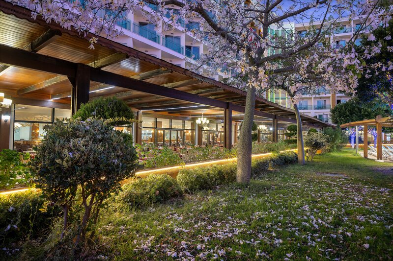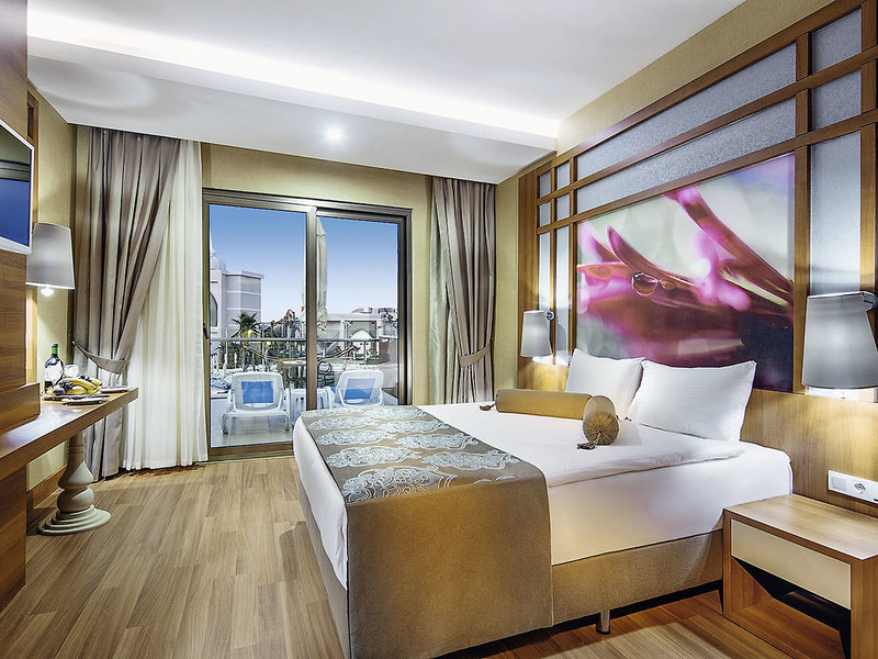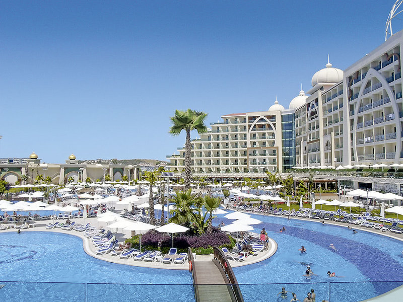 Ausstattung: Hotel der Luxusklasse auf einer Gesamtfläche von 45.000 qm. Swimmingpool, Aquapark (stdw.), Adult-only Pool, Sonnenterrassen, Poolbar, Snack-/Strandbar. Liegen, Schirme, Auflagen, Badetücher. Empfangshalle mit Rezeption. WLAN in den öffentlichen Bereichen (Highspeed gegen Gebühr). Hauptrestaurant, 2 À-la-carte-Restaurants (italienisch, türkisch), mehrere Bars, Teehaus, Geschäfte, Friseur, Arzt. Landeskategorie: 5 Sterne, 780 Zimmer, 6 Etagen, 9 Lifte.