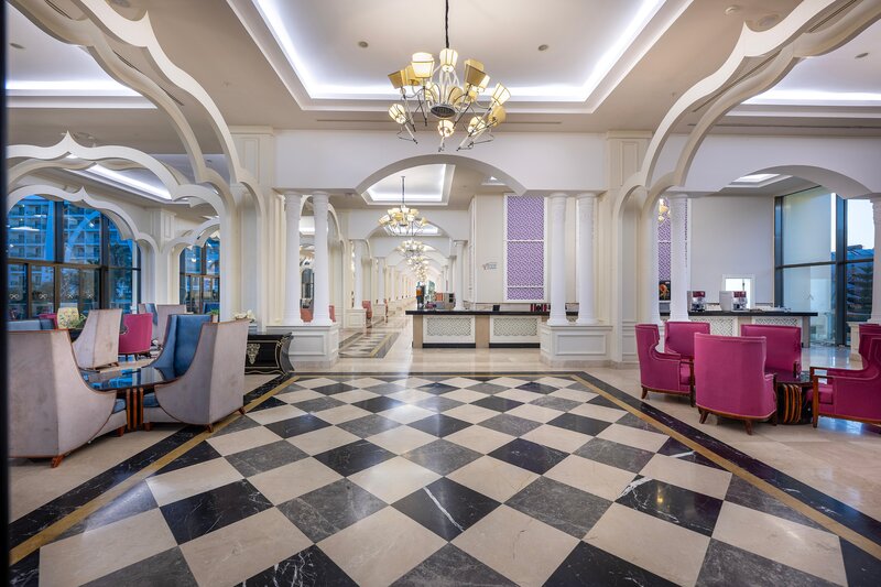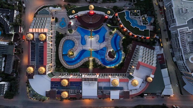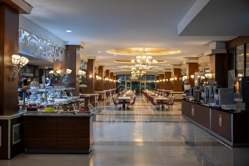Vybavenie: Luxusný hotel s celkovou rozlohou 45 000 m². Bazén, aquapark (otvorený v stanovených hodinách), bazén len pre dospelých, slnečné terasy, bar pri bazéne, bar s občerstvením/plážový bar. K dispozícii sú ležadlá, slnečníky, vankúše a plážové osušky. Lobby s recepciou. Wi-Fi vo verejných priestoroch (vysokorýchlostné pripojenie za poplatok). Hlavná reštaurácia, dve à la carte reštaurácie (talianska a turecká), niekoľko barov, čajovňa, obchody, kaderníctvo a lekár. Oficiálne hodnotenie: 5 hviezdičiek, 780 izieb, 6 poschodí, 9 výťahov.
