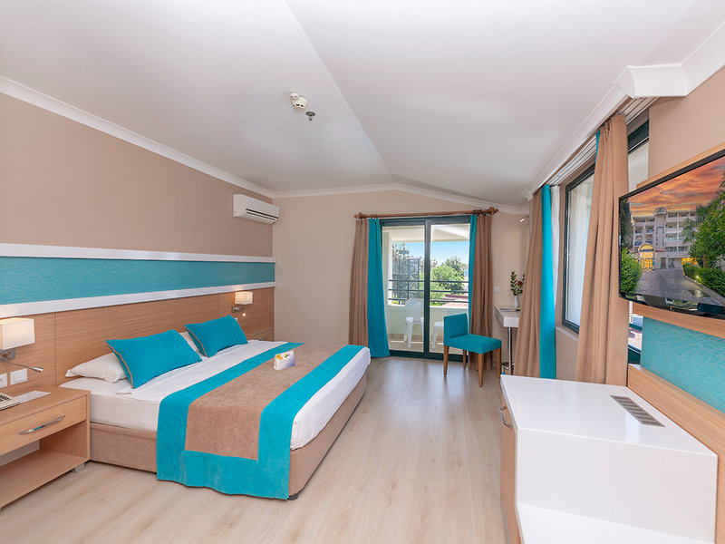 Ausstattung: Hotel der guten Mittelklasse, bestehend aus mehreren Gebäuden, mit einer ansprechenden Gartenanlage. Swimmingpool, Sonnenterrasse, Poolbar, Snackbar. Liegen, Auflagen, Schirme, Badetücher (Wechsel geg. Geb.). Außenbühne. Rezeption (WLAN begrenzt), Hauptrestaurant, Terrasse, Bar, Friseur, Minimarkt. Landeskategorie: 4 Sterne, 261 Zimmer, 4-5 Etagen, 5 Lifte.