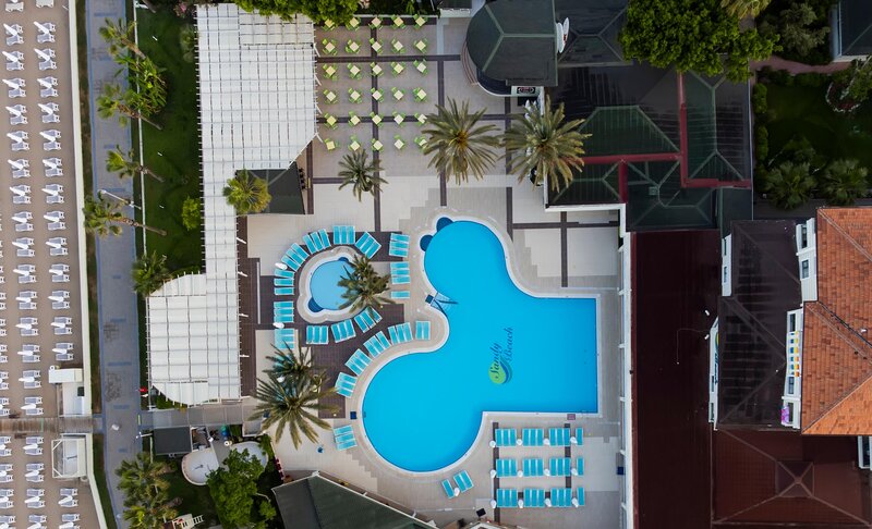 Poloha: Na privilegovanom mieste, od kilometrovej pláže s jemným pieskom oddelené plážovou promenádou. Obchody, reštaurácie v okolí. Historické centrum Side s množstvom nákupných a zábavných možností je vzdialené asi 30 minút chôdze (verejné minibusy).