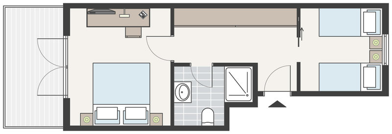 - Family Land View Room (FZL1), Familienzimmer, im Hauptgebäude, Landseite, Gartenblick, Blick auf road and street, ca. 30 - 31 m², letzte Komplettrenovierung 2013, Gesamtanzahl der Räume in diesem Zimmertyp: 2, Aufteilung wie folgt: kombiniertes Wohn-/Schlafzimmer, 1 Schlafzimmer, 2 Schlafsofas, Babybett: ohne Gebühr, Anfrage & Reservierung notwendig, Klimaanlage: ohne Gebühr, wetterabhängig, zentral gesteuert, Fußboden: Laminat, Safe: ohne Gebühr, Kühlschrank: ohne Gebühr, Telefon, Internet: WLAN/WiFi: ohne Gebühr, Fernseher: Flatscreen, Reinigungsservice: mehrmals pro Woche, ohne Gebühr, Dusche, WC, Föhn, Balkon: mit Sitzgelegenheit